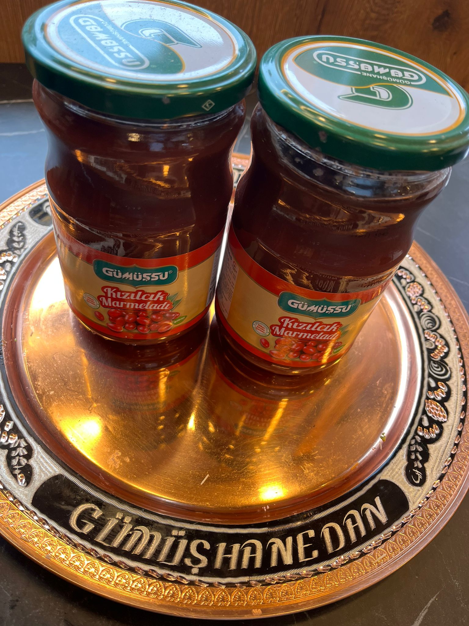 Gümüşhane dağlarında toplanan yabani kuşburnundan hazırlanan doğal marmelat. C vitamini deposu. Kahvaltıda veya tatlı olarak tüketilebilir. 850gr.